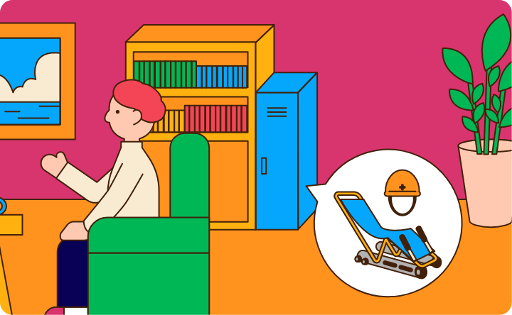 階段避難車階段での歩行が困難の方が安全に避難できるように開発された避難器具です。座ったまま階段をスムースに降下できます。